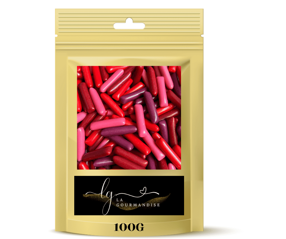 Sucre, sirop de glucose, dextrose, graisse de palme, 5% de jus de fruits à base de concentrés (pomme, pêche, citron, fraise, framboise), gélatine bovine, stabilisant : gomme arabique; amidon modifié, dextrose, acidifiants : acide lactique, acide citrique; arômes, émulsifiant lécithines; colorants : carmins, curcumine, bleu brillant FCF, charbon végétalmédicinal; agents d'enrobage : cire de carnauba, shellac, cire d'abeille blanche et jaune.