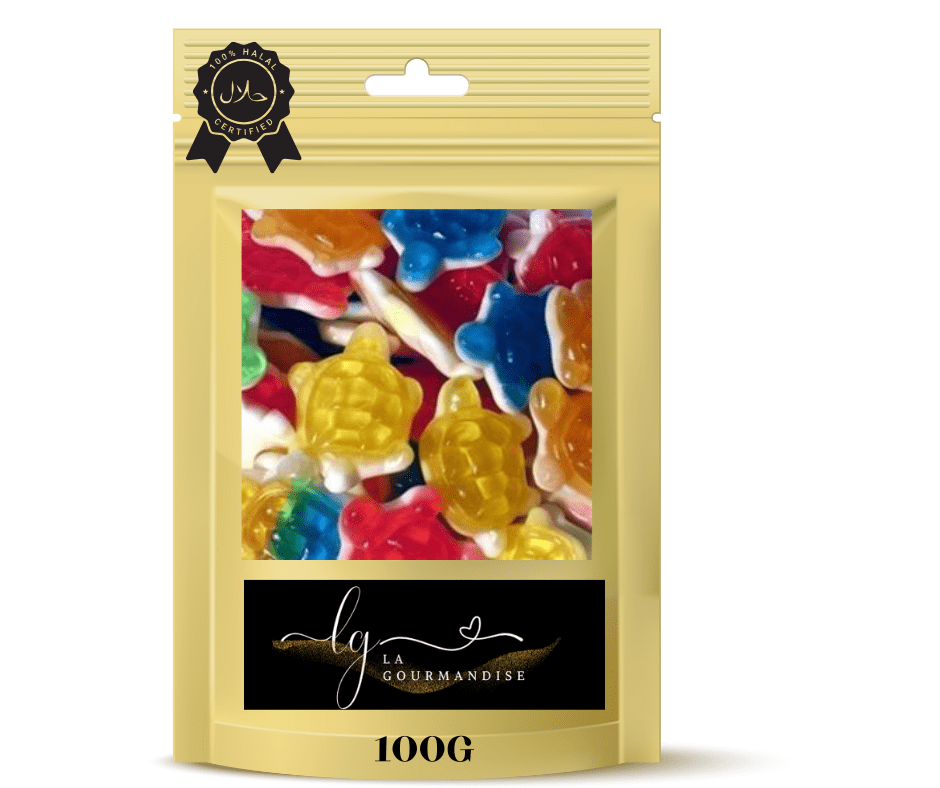 - Ingrédients : (sous réserve de modification par le fabricant) Sirop de glucose, sucre, eau, gélatine de boeuf, humectant E420(ii), amidon modifié de pomme de terre, acidifiants : E270, E330, agent d'enrobage : huile végétale (palme) E901, E903, arômes, colorants : E100, E129, E133. Sans gluten.